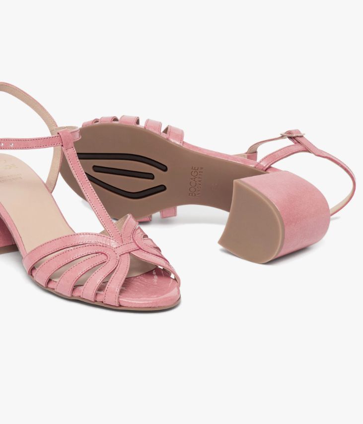 Une sandale en cuir verni rose fabriquée avec soin dans notre atelier en France, au cœur du Maine et Loire (49). Une chaussure forme Salomé qui convient à toutes les morphologies. Entièrement doublée cuir, avec semelle intérieure cuir dotée d’une fine mousse, elle est posée sur une semelle fine et un large talon enrobé. Notre technologie Bocage Innovation vous garantit un bien-être inégalé. La semelle dissimule des élastiques qui permettent à votre chaussure de s’adapter à votre pied. Fermeture par boucle dorée. Ce cuir Naplak particulièrement souple peut présenter un aspect légèrement froissé.