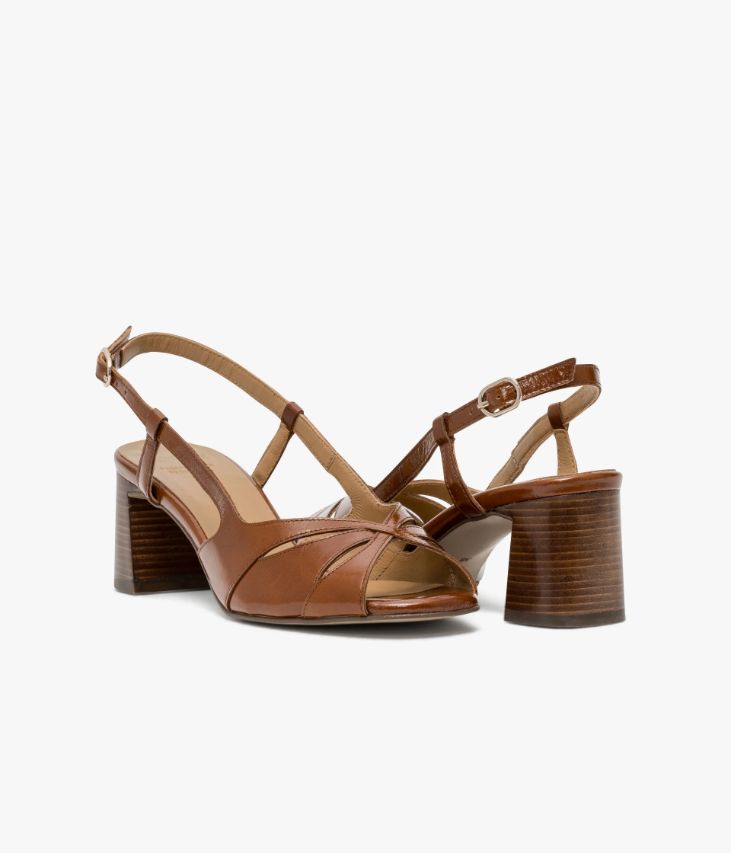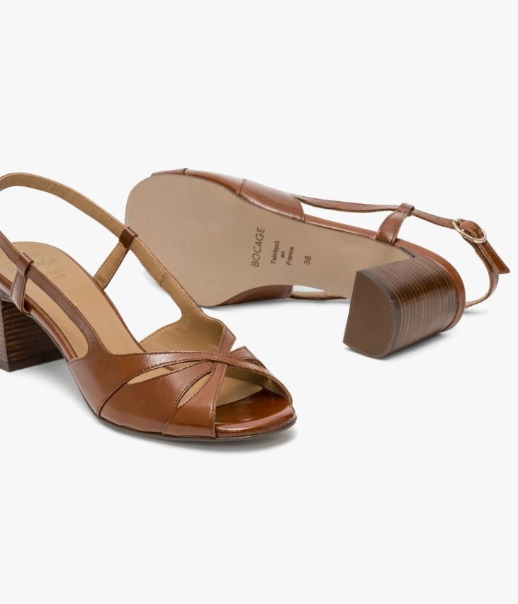 Une sandale cognac en cuir brillant fabriquée avec soin dans notre propre atelier en France, au cœur du Maine et Loire (49). Cette sandale femme, à l’allure résolument vintage, ajoutera une touche d’élégance à vos tenues du quotidien comme à vos tenues de soirée. Grâce à sa forme enveloppante et sa bride arrière fermée par une boucle dorée, elle procure un excellent maintien. Une chaussure entièrement doublée cuir avec semelle intérieure cuir moussée. Elle repose sur une semelle lisse et un talon lamellé collé au design graphique. Son cuir vintage est un cuir d'aspect vieilli qui se patine avec le temps, un cuir brillant qui affiche un aspect plus ou moins froissé, dont la tonalité peut varier, et qui peut avoir un aspect "déjà porté".