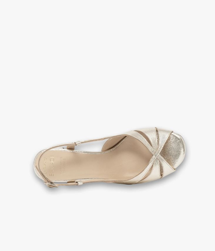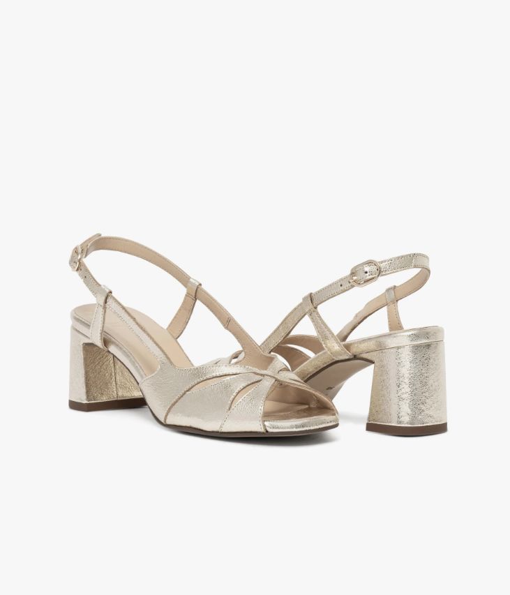 Une sandale platine en cuir métallisé aspect craquelé fabriquée avec soin dans notre propre atelier en France, au cœur du Maine et Loire (49). Cette sandale femme en cuir souple à la fois élégante et confortable, ajoutera une touche d’éclat à vos tenues du quotidien comme à vos tenues de cérémonie. Grâce à sa forme enveloppante et sa bride arrière fermée par une boucle dorée, elle procure un excellent maintien. Une chaussure entièrement doublée cuir avec semelle intérieure cuir moussée. Elle repose sur une semelle lisse et un talon enrobé au design graphique.