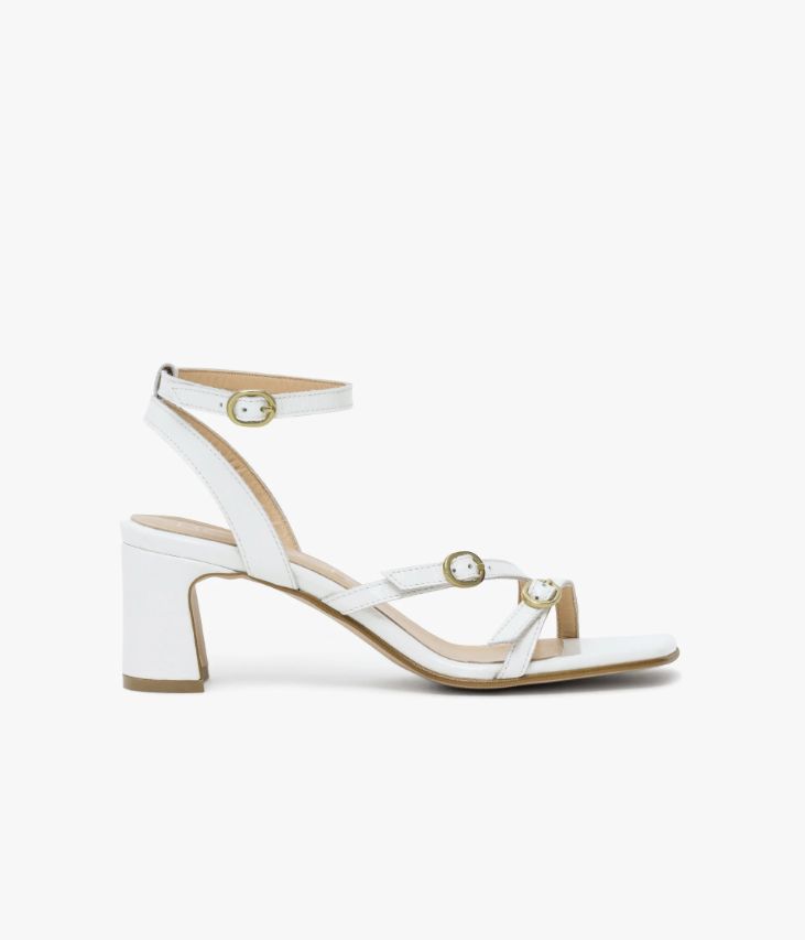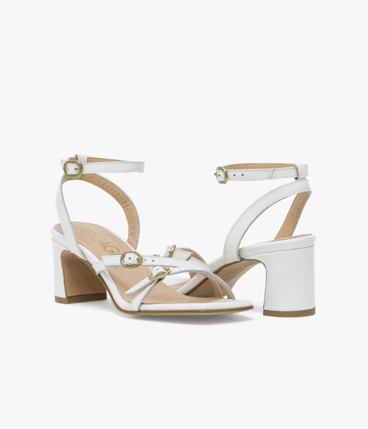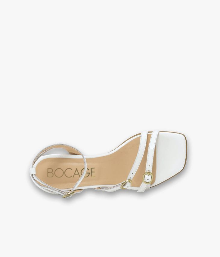 Une sandale en cuir verni blanc fabriquée avec le plus grand soin. Un modèle chic et pétillant qui illuminera les tenues estivales. Elle sublime le pied par un jeu de fines brides asymétriques sur le dessus du pied et d’une bride mobile autour de la cheville, toutes ajustables par des boucles dorées. Cette sandale femme, entièrement doublée cuir avec semelle intérieure cuir moussée, repose sur une semelle fine à bout carré et un talon à gorge enrobé de cuir particulièrement féminin. Ce cuir Naplak particulièrement souple peut présenter un aspect légèrement froissé.