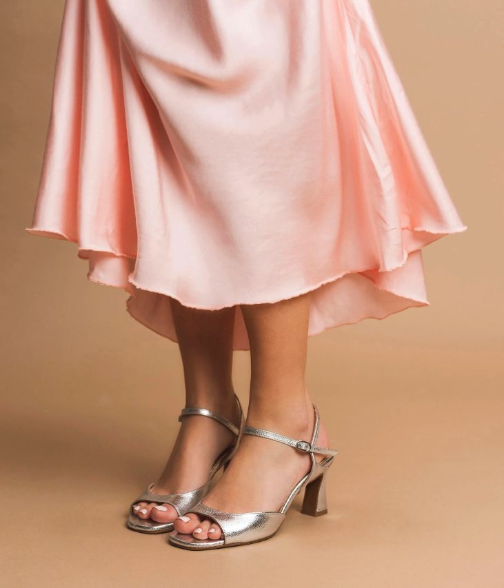 Une sandale en cuir métallisé argent fabriquée avec le plus grand soin. Avec sa semelle à bout carré et son talon flare enrobé, cette sandale plate affiche une allure résolument rétro. Ses fines brides sont ajustables grâce à des boucles en métal argenté. Une chaussure entièrement doublée cuir avec semelle intérieure cuir dotée d’une fine mousse. Notre technologie Bocage Innovation vous garantit un bien-être inégalé. La semelle dissimule des élastiques qui permettent à votre chaussure de s’adapter à votre pied.