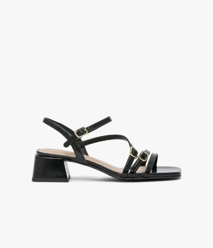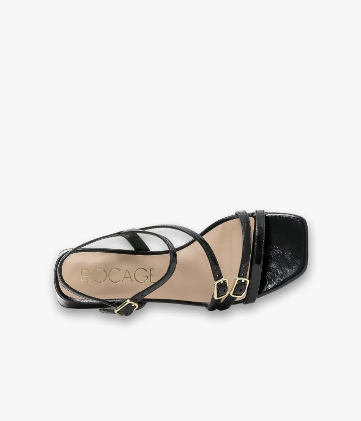 Une sandale en cuir verni noir fabriquée avec le plus grand soin. Avec sa semelle à bout carré et son talon flare enrobé, cette sandale plate affiche une allure résolument rétro. Ses fines brides sont ajustables grâce à des boucles en métal doré. Une chaussure entièrement doublée cuir avec semelle intérieure cuir dotée d’une fine mousse. Notre technologie Bocage Innovation vous garantit un bien-être inégalé. La semelle dissimule des élastiques qui permettent à votre chaussure de s’adapter à votre pied.