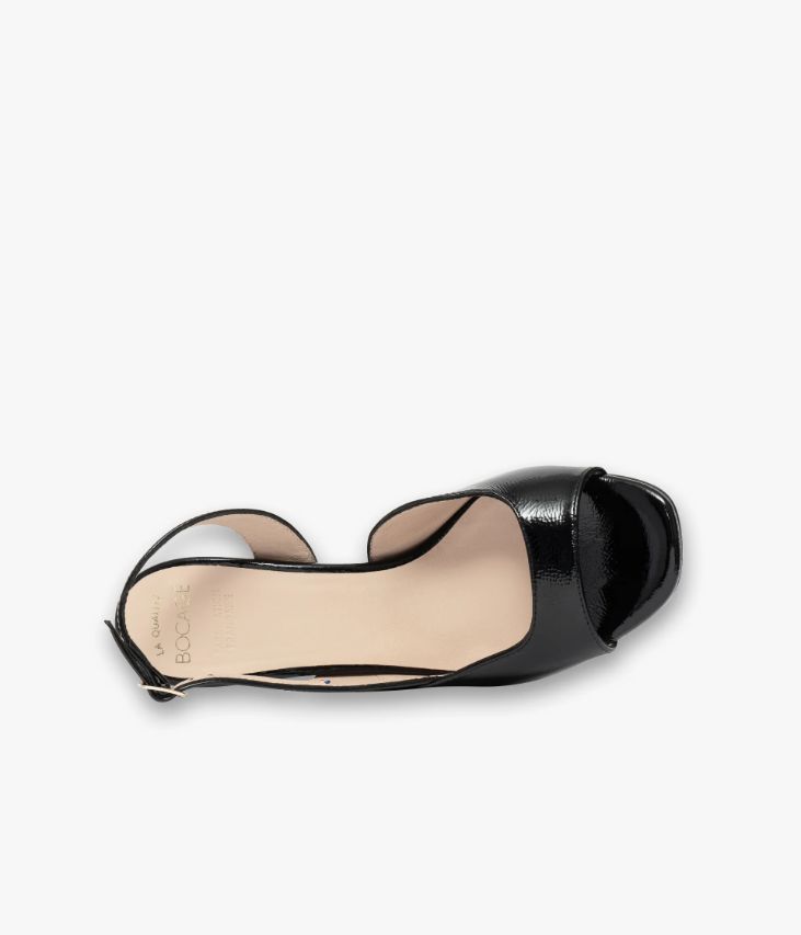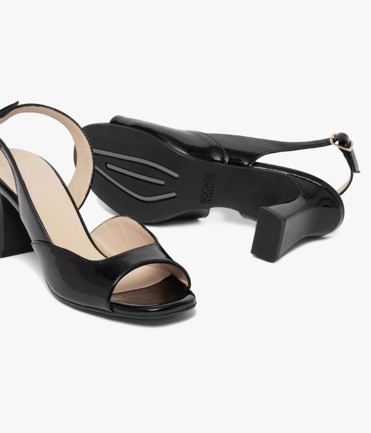 Une sandale en cuir verni noir fabriquée avec soin dans notre atelier en France, au cœur du Maine et Loire (49). Elle arbore une silhouette rétro largement décolletée qui met le pied en valeur et se distingue par son élégant talon à gorge au design graphique. Notre technologie Bocage Innovation vous garantit un bien-être inégalé. La semelle dissimule des élastiques qui permettent à votre chaussure de s’adapter à votre pied. Une sandale entièrement doublée cuir avec semelle intérieure cuir dotée d’une fine mousse. Grâce à son large décolleté, cette chaussure convient aussi aux cous-de-pied forts. Ce cuir Naplak particulièrement souple peut présenter un aspect légèrement froissé.