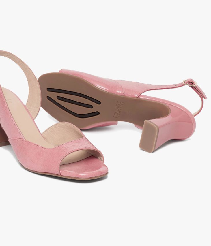 Une sandale en cuir verni rose fabriquée avec soin dans notre atelier en France, au cœur du Maine et Loire (49). Elle arbore une silhouette rétro largement décolletée qui met le pied en valeur et se distingue par son élégant talon à gorge au design graphique. Une sandale entièrement doublée cuir avec semelle intérieure cuir dotée d’une fine mousse. Notre technologie Bocage Innovation vous garantit un bien-être inégalé. La semelle dissimule des élastiques qui permettent à votre chaussure de s’adapter à votre pied. Grâce à son large décolleté, cette chaussure convient aussi aux cous-de-pied forts. Ce cuir Naplak particulièrement souple peut présenter un aspect légèrement froissé.