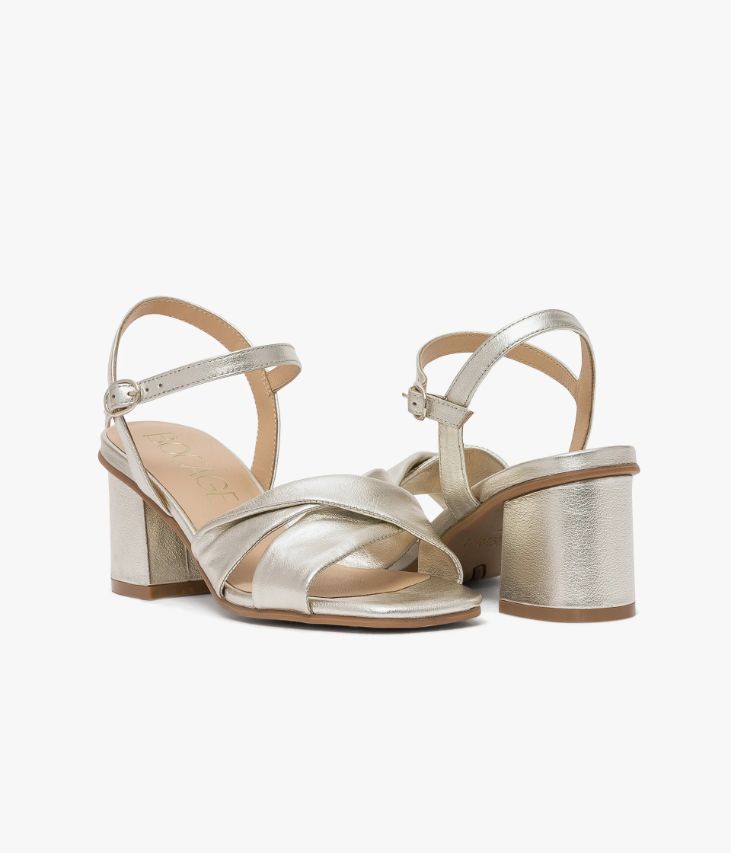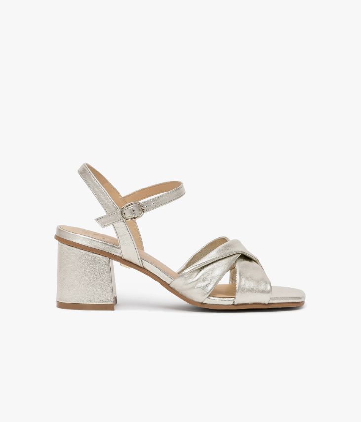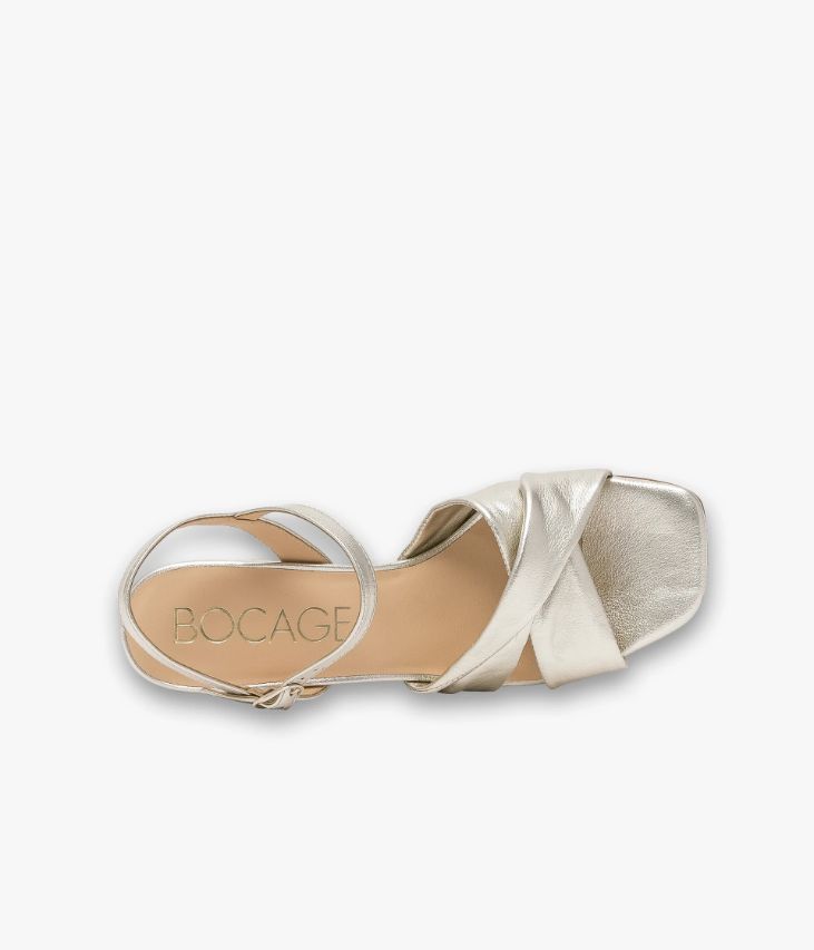 Une sandale platine en cuir métallisé fabriquée avec le plus grand soin. Elle allie confort et élégance grâce à ses brides tubulaires ultra souples entrecroisées affichant un effet drapé et ses fines brides autour de la cheville, fermées par une boucle dorée. Elle repose sur une semelle fine et un large talon enrobé positionné en retrait. Notre technologie Bocage Innovation vous garantit un bien-être inégalé. La semelle dissimule des élastiques qui permettent à votre chaussure de s’adapter à votre pied. Une chaussure entièrement doublée cuir avec semelle intérieure cuir dotée d’une fine mousse. Logo signature sous la semelle.