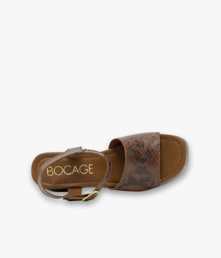 Une sandale en cuir chocolat imprimé python fabriquée avec soin en Italie. Un modèle aux accents vintage, inspiré des années 70, posé sur une épaisse semelle aspect bois à bout carré avec large talon. Parfaitement enveloppante, cette sandale se ferme à l’aide d’une boucle dorée sur la bride cheville. Une chaussure entièrement doublée cuir avec semelle intérieure cuir moussée. Semelle 3 cm.