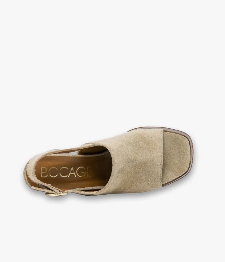 Une sandale en cuir velours beige fabriquée avec le plus grand soin. Une très jolie sandale à plateforme esprit seventie’s qui recouvre bien le dessus du pied et offre un bon maintien grâce à une bride arrière fermée par une boucle ronde en métal doré. Posée sur une semelle à bout carré de 2 cm et un talon de 9 cm, cette sandale fait prendre de la hauteur en ajoutant une note rétro à tous les looks. Une chaussure entièrement doublée cuir avec semelle intérieure cuir dotée d’une fine mousse.