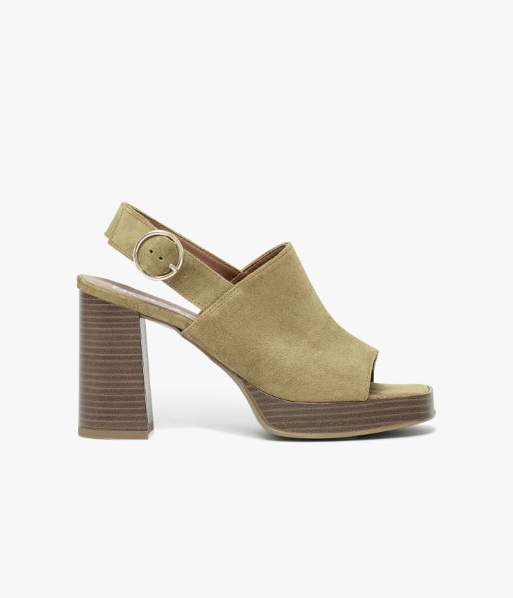 Une sandale en cuir velours sable fabriquée avec le plus grand soin. Une très jolie sandale à plateforme esprit seventie’s qui recouvre bien le dessus du pied et offre un bon maintien grâce à une bride arrière fermée par une boucle ronde en métal doré. Posée sur une semelle à bout carré de 2 cm et un talon de 9 cm, cette sandale fait prendre de la hauteur en ajoutant une note rétro à tous les looks. Une chaussure entièrement doublée cuir avec semelle intérieure cuir dotée d’une fine mousse.