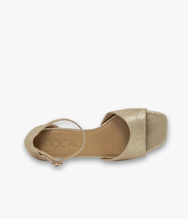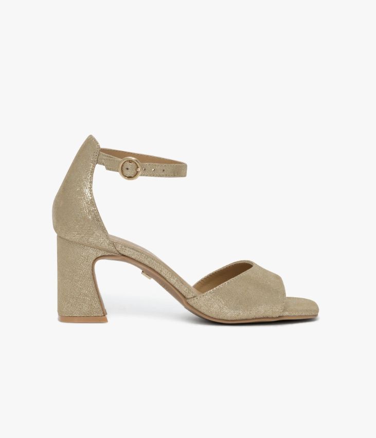 Une sandale en cuir velours doré fabriquée avec le plus grand soin. Un modèle qui mêle élégance et accents contemporains avec sa fine bride à la cheville, sa semelle à bout carré et son talon à gorge au design graphique. Grâce à sa large bride sur le dessus et son talon fermé, elle offre un excellent maintien. Cette sandale scintillante se ferme à l’aide d’une boucle ronde dorée dissimulant un élastique. Une chaussure entièrement doublée cuir avec semelle intérieure cuir moussée. Notre technologie Bocage Innovation vous garantit un bien-être inégalé. La semelle dissimule des élastiques qui permettent à votre chaussure de s’adapter à votre pied.