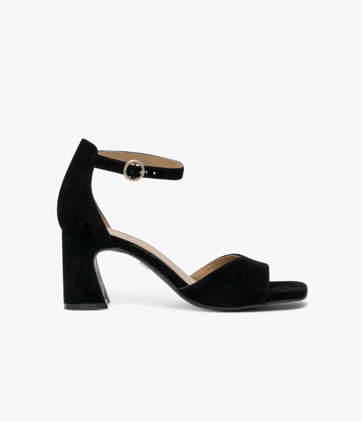 Une sandale en cuir velours noir fabriquée avec le plus grand soin. Un modèle qui mêle élégance et accents contemporains avec sa fine bride à la cheville, sa semelle à bout carré et son talon à gorge au design graphique. Grâce à sa large bride sur le dessus et son talon fermé, elle offre un excellent maintien. Elle se ferme à l’aide d’une boucle ronde dorée dissimulant un élastique. Une chaussure entièrement doublée cuir avec semelle intérieure cuir moussée. Notre technologie Bocage Innovation vous garantit un bien-être inégalé. La semelle dissimule des élastiques qui permettent à votre chaussure de s’adapter à votre pied.