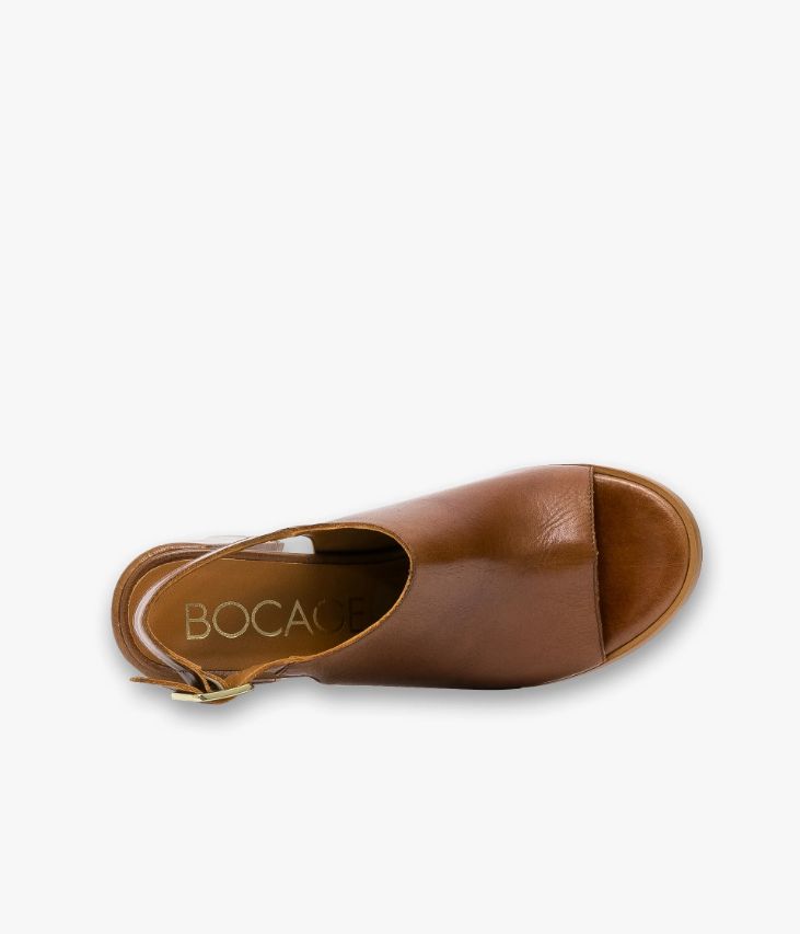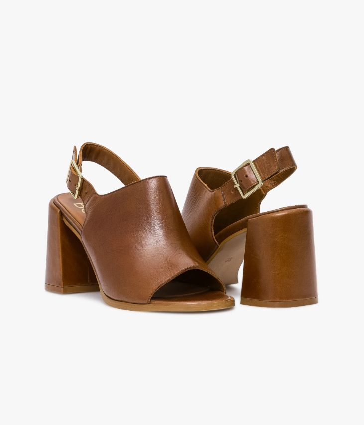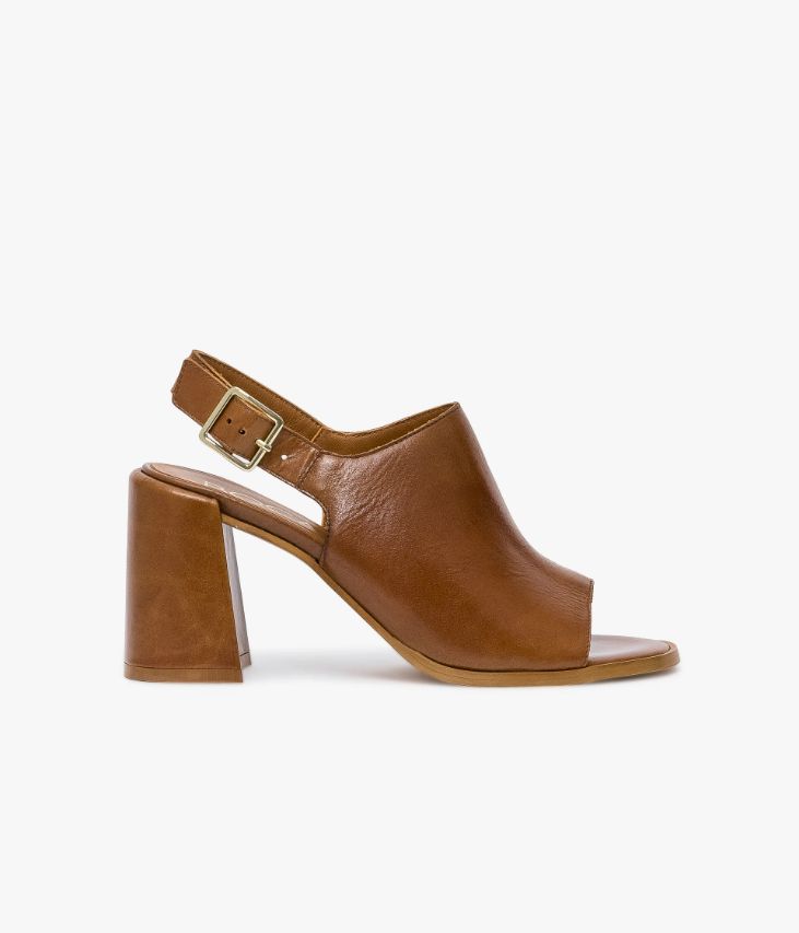 Une sandale en cuir lisse cognac fabriquée avec le plus grand soin. Particulièrement couvrante et dotée d’une semelle à bout rond et d’un talon flare, elle arbore une allure rétro 70’s, accentuée par un cuir vintage. Cette sandale se ferme à l’aide d’une boucle en métal doré à la cheville. Une chaussure entièrement doublée cuir avec semelle intérieure cuir dotée d’une fine mousse. Ce cuir vintage affiche un style authentique et un aspect légèrement patiné.