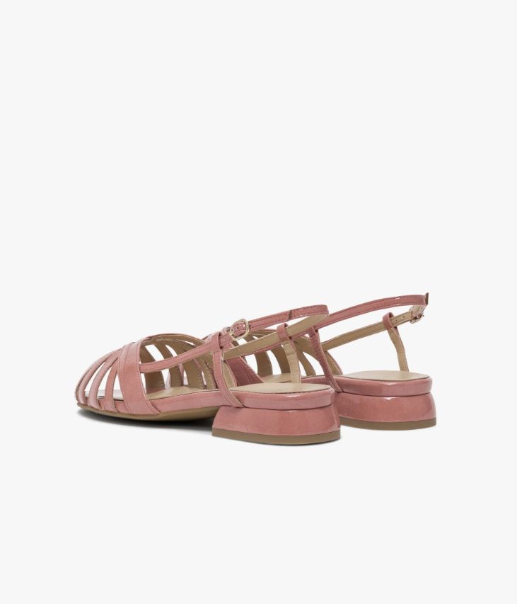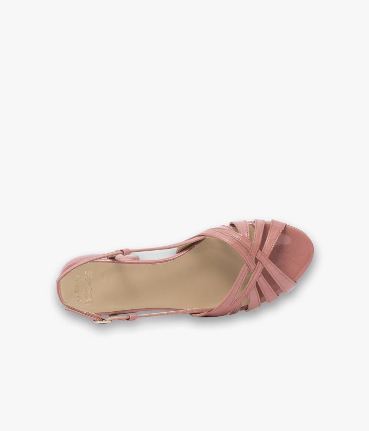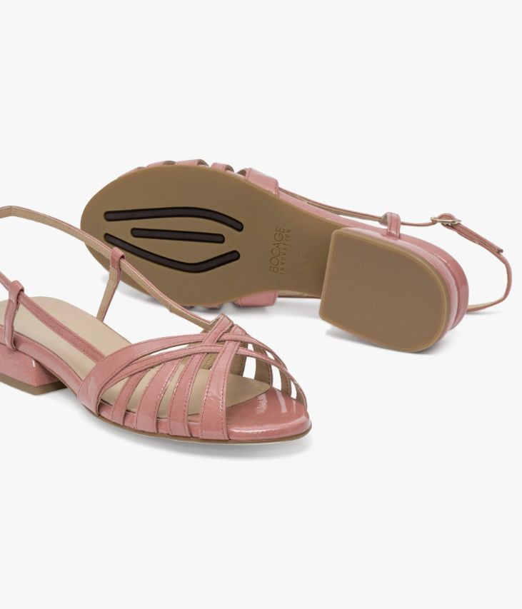 Une sandale en cuir verni rose fabriquée avec soin dans notre propre atelier en France, au cœur du Maine et Loire (49). Cette sandale plate sublime le pied par de jolies brides entrecroisées sur le dessus et une fine bride autour du talon, fermée par une boucle dorée. Une coupe rétro confortable et élégante twistée par un petit talon flare enrobé de cuir. Une chaussure entièrement doublée cuir avec semelle intérieure cuir moussée. Notre technologie Bocage Innovation vous garantit un bien-être inégalé. La semelle dissimule des élastiques qui permettent à votre chaussure de s’adapter à votre pied.