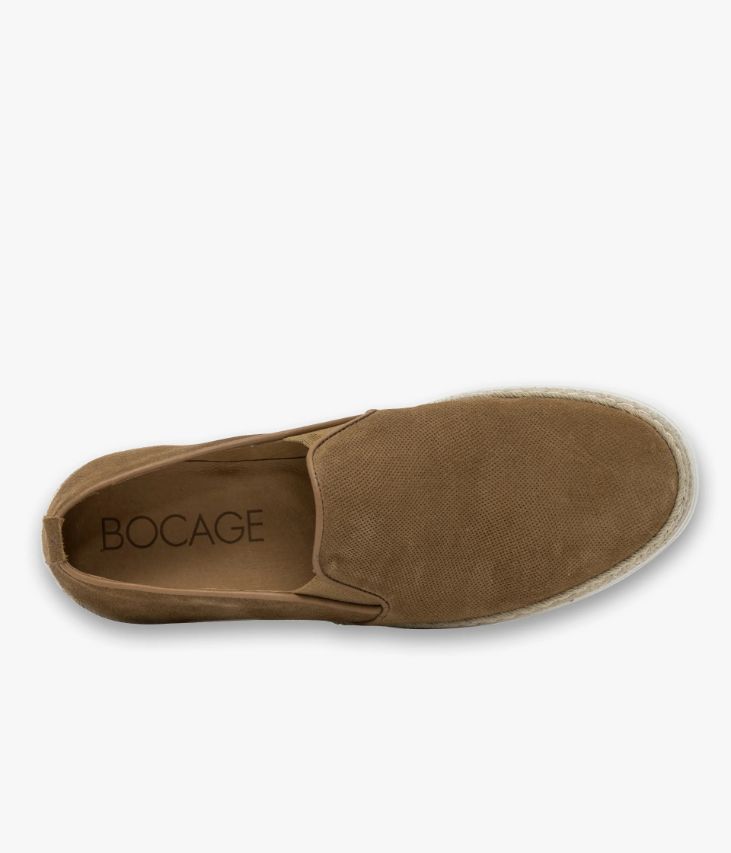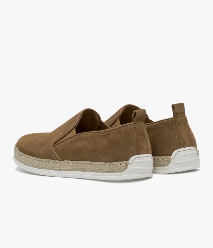 Un slip-on en cuir velours cognac fabriqué avec soin au Portugal. Une chaussure estivale facile à enfiler qui ajoutera une note décontractée à toutes les tenues. Elle affiche un effet perforé sur l’avant, de jolies finitions en cuir lisse sur le col et possède des élastiques d’aisance sur les côtés. Une chaussure partiellement doublée cuir avec semelle intérieure cuir moussée. Avec sa semelle blanche enrobée de corde tressée, elle mixe influences sportives et inspirations espadrilles. La tige et la semelle sont renforcées grâce au cousu latéral. Ce cousu est un gage de qualité quant à sa fabrication et à sa durabilité. Tirette au talon. Semelle 2,5 cm.